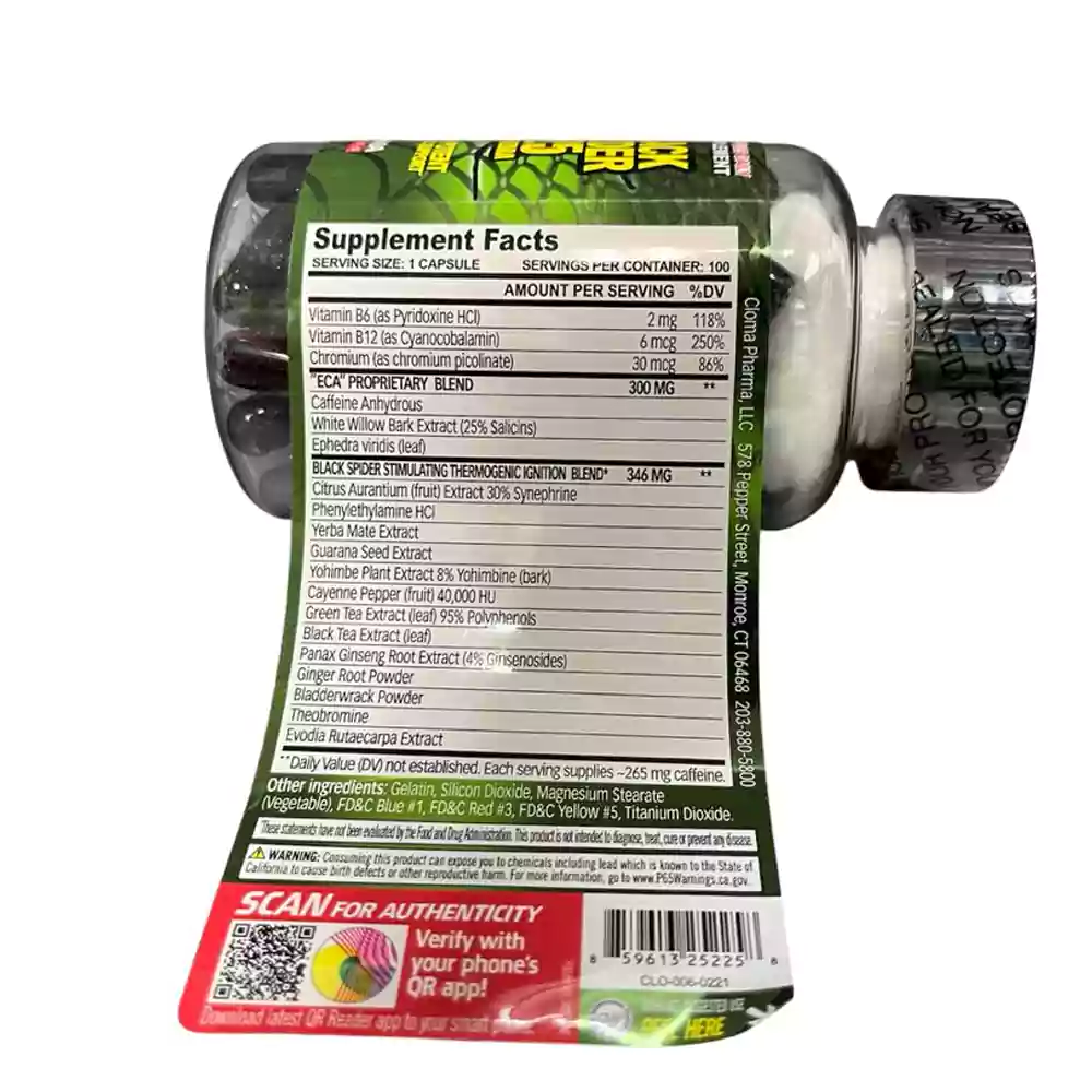 چربی سوز بلک اسپایدر ۱۰۰ تایی کلومافارما (Cloma Pharma Black Spider Fat Burner 100 Capsules) یکی از قدرتمندترین مکملهای چربیسوز در بازار است که توسط برند معتبر کلوما فارما برای ورزشکاران، بدنسازان و افرادی طراحی شده که به دنبال کاهش وزن سریع، افزایش متابولیسم، و سوزاندن چربیهای مقاوم هستند. این محصول با فرمولاسیون ترموژنیک پیشرفته حاوی ترکیب ECA (افدرین، کافئین، و آسپرین) و مواد فعال دیگر مانند Citrus Aurantium (سینیفرین)، Yohimbe (یوهیمبین)، عصاره چای سبز، و کاین است که به افزایش ترموژنز (گرمازایی)، کاهش اشتها، و بهبود انرژی و تمرکز در تمرینات کمک میکند. هر کپسول حاوی ۲۵ میلیگرم عصاره افدرا (Ephedra viridis)، ۲۵۰ میلیگرم کافئین بدون آب، و ۱۰۰ میلیگرم پودر پوست درخت بید سفید (منبع سالیسین) است که اثر سینرژیستیک این ترکیبات باعث چربیسوزی فوقالعاده و افزایش متابولیسم پایه میشود. این مکمل با تحریک سیستم عصبی مرکزی، چربیهای ذخیرهشده را بهعنوان منبع انرژی مصرف میکند و برای دورههای کات حرفهای یا کاهش وزن در کنار رژیم غذایی و ورزش مناسب است. بلک اسپایدر کلومافارما با استانداردهای کیفی بالا تولید شده و مطالعات نشان میدهد که میتواند به کاهش سریع وزن و کالریسوزی کمک کند، اما برای افرادی که رژیم و ورزش بهتنهایی کافی نیست، ایدهآل است.
