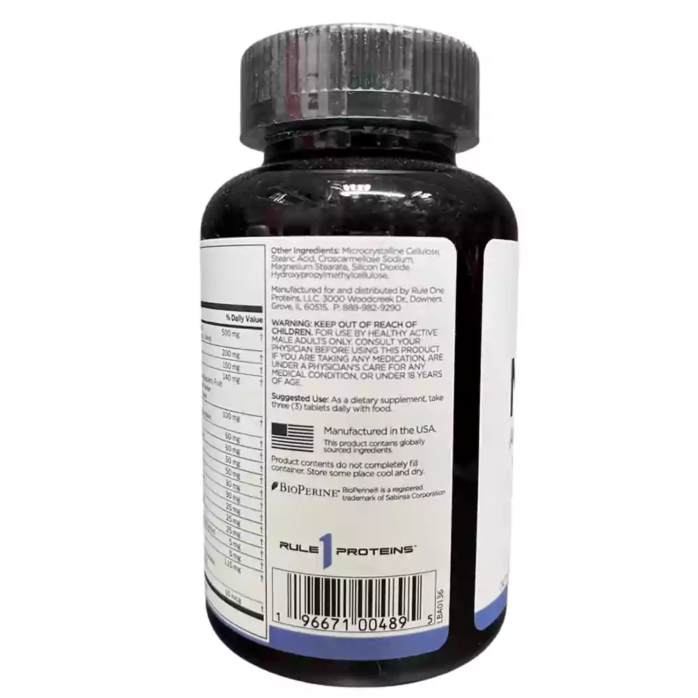 مولتی ویتامین و مولتی مینرال ۹۰ عددی مردانه رول وان (Rule 1 Men’s Multi Active Lifestyle) یک مکمل پیشرفته از برند معتبر Rule 1 Proteins آمریکا است که برای مردان با سبک زندگی فعال طراحی شده است. این محصول حاوی بیش از ۵۰ ماده فعال شامل ۲۴ ویتامین و ماده معدنی (مانند ویتامینهای A، C، D، E، K، گروه B، زینک، منیزیم، کلسیم)، اسیدهای آمینه، آنزیمهای گوارشی، آنتیاکسیدانها و فیتونوترینتها در هر وعده (۳ قرص) است که به تقویت سیستم ایمنی، افزایش انرژی، بهبود سلامت عضلات و استخوانها، و کاهش خستگی کمک میکند. این مکمل با صفر کالری، صفر شکر و بدون مواد پرکننده غیرضروری تولید شده و برای ورزشکاران، بدنسازان و مردانی که به دنبال حفظ سلامت عمومی و عملکرد بهینه هستند، ایدهآل است. مولتی ویتامین رول وان با ترکیباتی مانند ویتامین C (500 میلیگرم)، ویتامین D3 (37.5 میکروگرم)، زینک (15 میلیگرم) و منیزیم (40 میلیگرم)، به بهبود تمرکز، سلامت قلب، و متابولیسم انرژی کمک میکند. این محصول فاقد گلوتن و مواد ممنوعه بوده و با استانداردهای GMP تولید شده است.