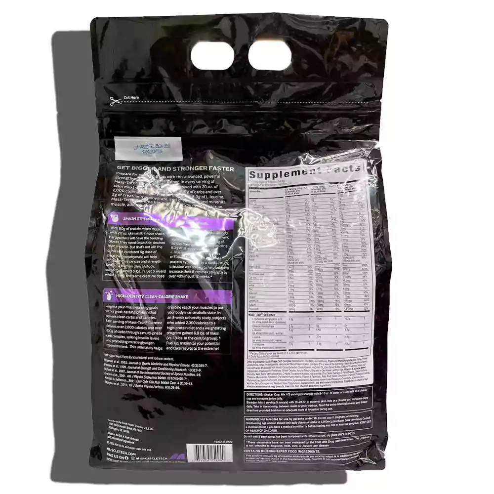 گینر مس تک اکستریم 2000 ماسل تک (MuscleTech Mass-Tech Extreme 2000) یکی از بهترین مکملهای افزایش وزن و حجم عضلانی از برند معتبر MuscleTech آمریکا است. این محصول به طور خاص برای بدنسازان، ورزشکاران و افرادی طراحی شده که به دنبال افزایش سریع حجم و قدرت عضلانی بدون افزودن چربی اضافی هستند. هر سروینگ (570 گرم) از این گینر با کیفیت بالا، حاوی 80 گرم پروتئین وی با ارزش بیولوژیکی بالا، بیش از 400 گرم کربوهیدرات پیچیده و 2000 کالری (هنگام مخلوط شدن با 475-600 میلیلیتر شیر بدون چربی) است که انرژی لازم برای تمرینات سنگین و ریکاوری سریع عضلات را فراهم میکند.
