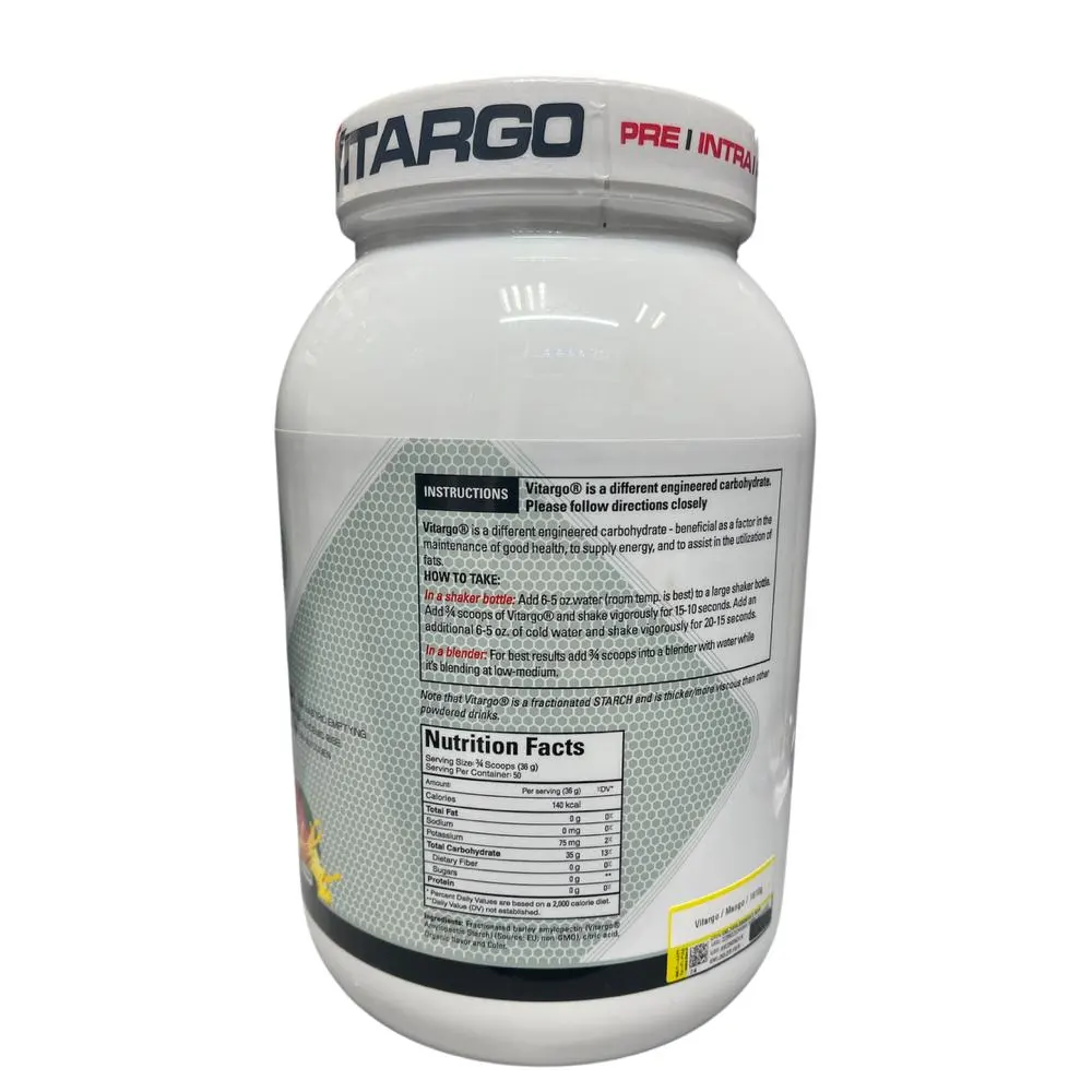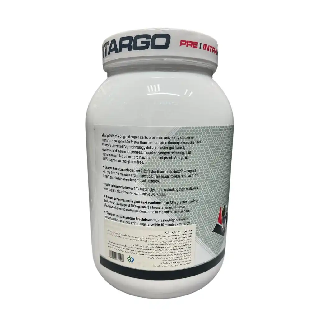 ویتارگو ۱.۸۱ کیلویی (Vitargo® Patented Carbohydrate 1.81kg) قویترین و سریعترین کربوهیدرات پتنتشده جهان از برند سوئدی Vitargo است که برای ورزشکاران حرفهای، بدنسازان و استقامتیها طراحی شده تا انرژی فوقسریع، پر کردن گلیکوژن عضلانی، و ریکاوری حداکثری بدون نفخ یا افت قند فراهم کند.